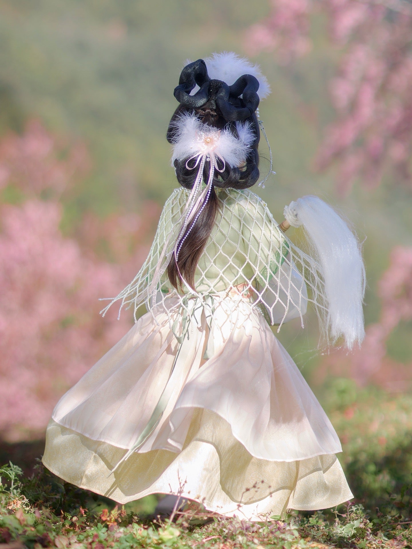 This pink and green gown, where Warring States elegance meets fairy spirit, allows every movement to bloom like a lotus step by step, writing her very own classical fairy tale.