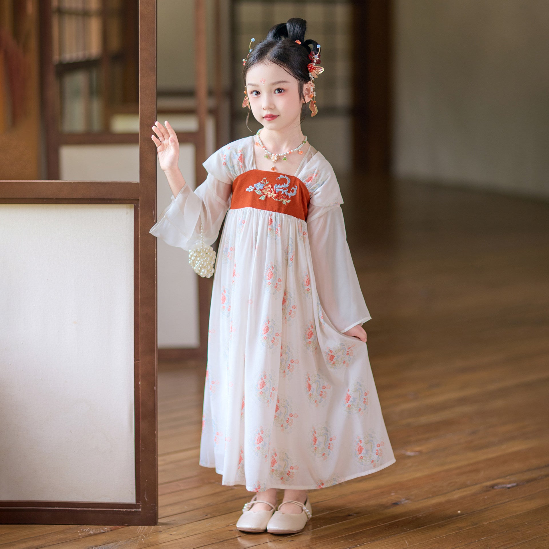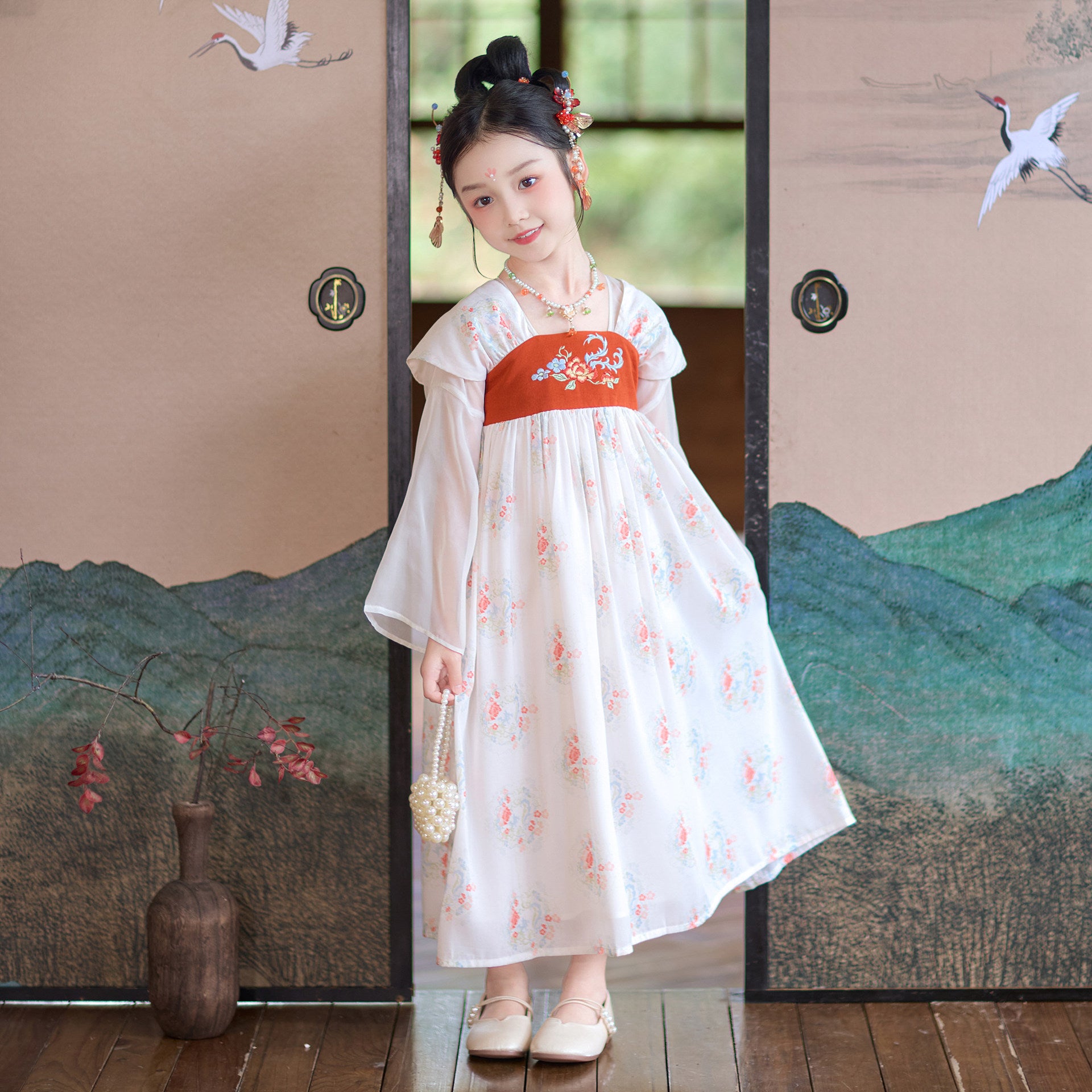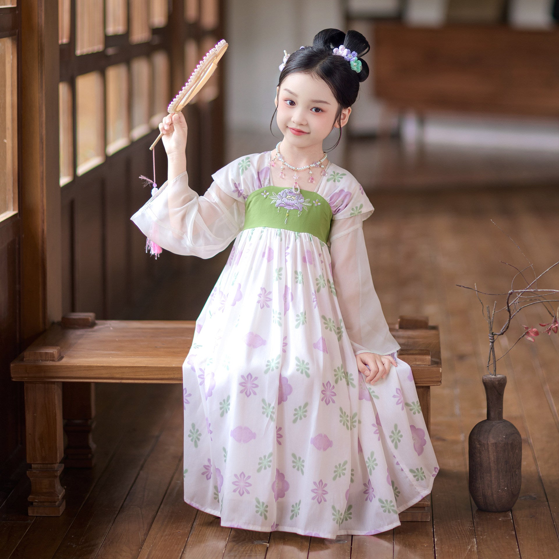 JXGX Girls Floral Hanfu Dress – Chinese Traditional Kids Dress Elegant Printed Princess Outfit ---Yunshuiyao